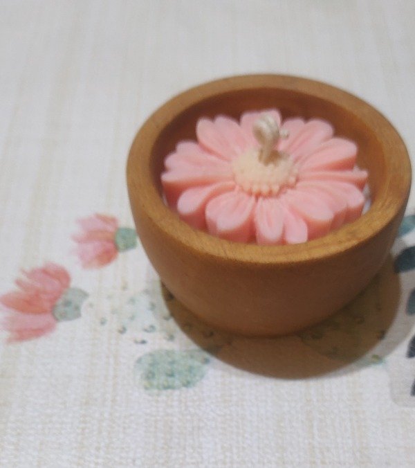 Vela de cera de soja 🌿 en cuenco de madera con vela en forma de margarita 🌼